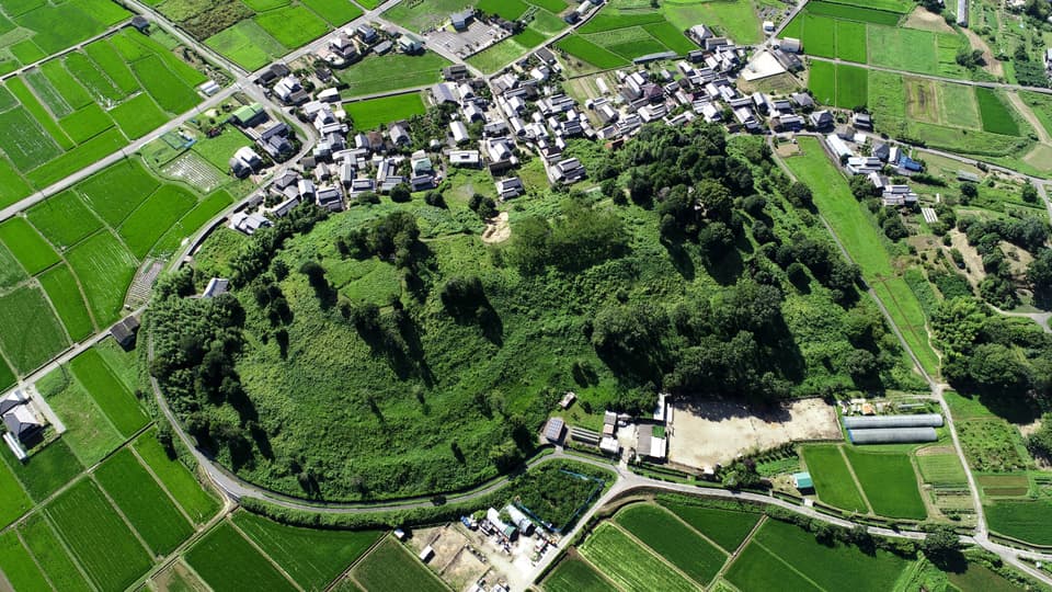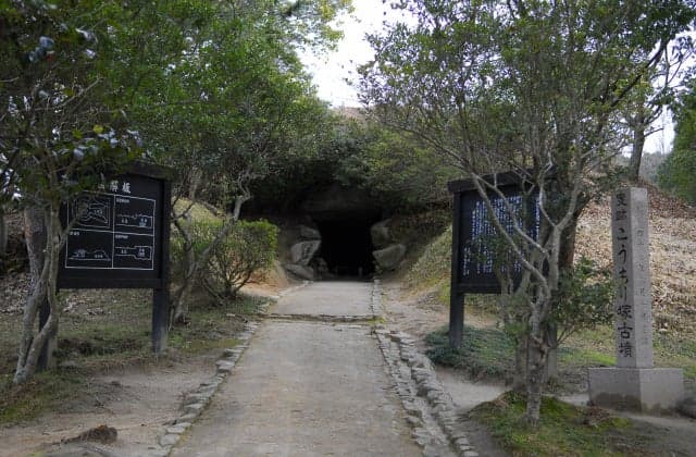 造山古墳の前方部前面に位置する、墳頂約81m、後円部径約63m、同高さ7.4m以上、前方部長約25mからなる前方後円墳。造山古墳群を構成する6基の陪塚の一つで後円部には横穴式石室が2つあります。埴輪を並べた墳丘へ登ることができ、石室内部を見学できます。