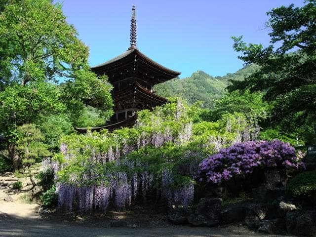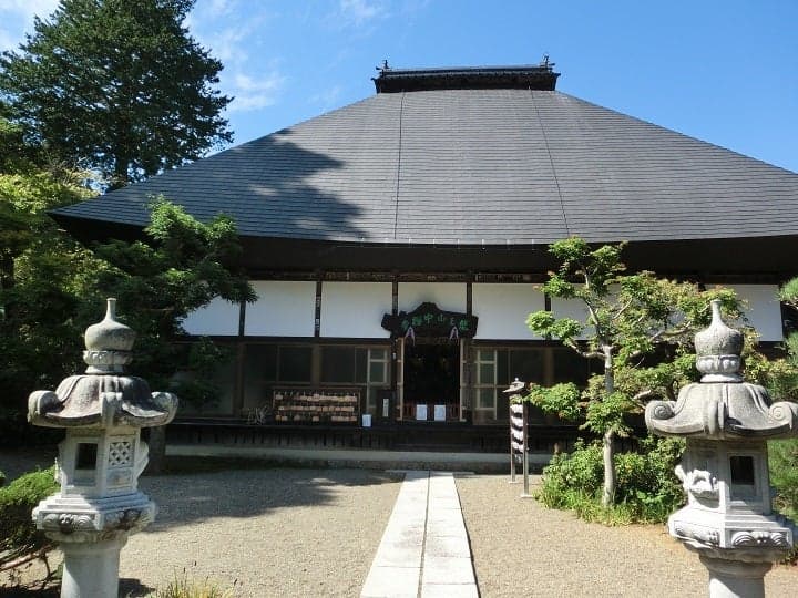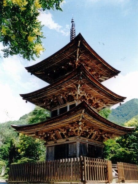 独鈷山のふもとにある中部日本最古の木造建築物。本尊の薬師如来座像、神将像とともに国の重要文化財に指定されています。