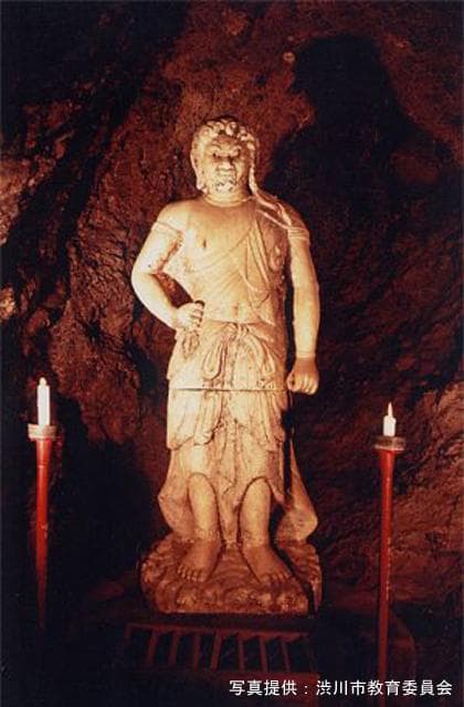 小室字棗久保(なつめくぼ)に所在します。昭和42年(1967)に地元の少年が発見し、群馬大学尾崎喜佐雄教授によって調査されました。縄文時代後期初頭の住居跡で、ほぼ六角形の平面形をもつ本体部分に、南側に細長い出入口部が付いています。床面には平らな石が敷き詰められており、本体部分では石敷きの周りに柱穴があり、中央に石組みの炉(ろ)があります。本体部分は東西3メートル、南北3.35メートル、出入口部は幅0.7メートル、長さ2.3メートルを測ります。保存状態が良いため、縄文時代の文化・集落の研究上重要な資料となっており、今は現地に覆屋(おおいや)がかけられ公開されています。