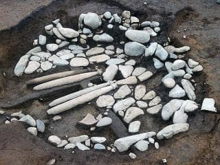 通常、石棒は被熱していたり、破損している事例が大半で、どのように埋められていたのか良く分かっていません。