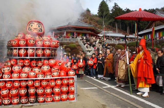 「だるま観音」として知られるお寺で、境内には約5メートルもある達磨大師坐像が安置され、毎年1月中旬に念願かなって両目を入れ奉納されただるまを供養する「だるま供養」が行なわれます。戦国時代、斎藤道三や織田信長、豊臣秀吉に仕え美濃三人衆の筆頭に挙げられた「稲葉一鉄」ゆかりの寺で多くの遺品が残されています。 ドウダンツツジの名所としても有名で、境内の庭園や裏山には約1,200本のドウダンツツジが植えられており、中には樹齢350年以上の古木もあります。春は小さな白い花が一面に咲き、秋は深紅の紅葉が見事です。毎年春と秋には庭園が一般公開され杉苔とドウダンの庭を楽しむことが出来ます。
