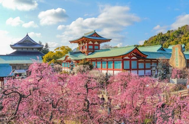 学問の神様として有名な菅原道真を祀る神社は全国に約1万2千社ありますが、最初に創建されたのはここ、防府天満宮といわれています。京都の北野天満宮、福岡の太宰府天満宮とともに日本三天神のひとつに数えられています。安産祈願や商売繁盛など様々な御利益がありますが、やはり合格祈願や学業成就を願って訪れる人が多く、境内にかかるあふれんばかりの絵馬には多くの願いが込められています。合格はちまきやえんぴつなど5点がセットになった「合格御守」が人気です。正月の初詣、荒祭りとして知られる11月の御神幸祭(裸坊祭)など1年を通じてイベントも多く、多くの参拝者で賑わいます。また、道真も愛した梅の季節には、梅をモチーフにした特別な御朱印や「出世梅」配布など約2週間にわたって梅まつりが行われます。境内にも見どころが多く、春風楼や歴史館、芳松庵など防府と道真の歴史を伝える文化財が多く現存しています。