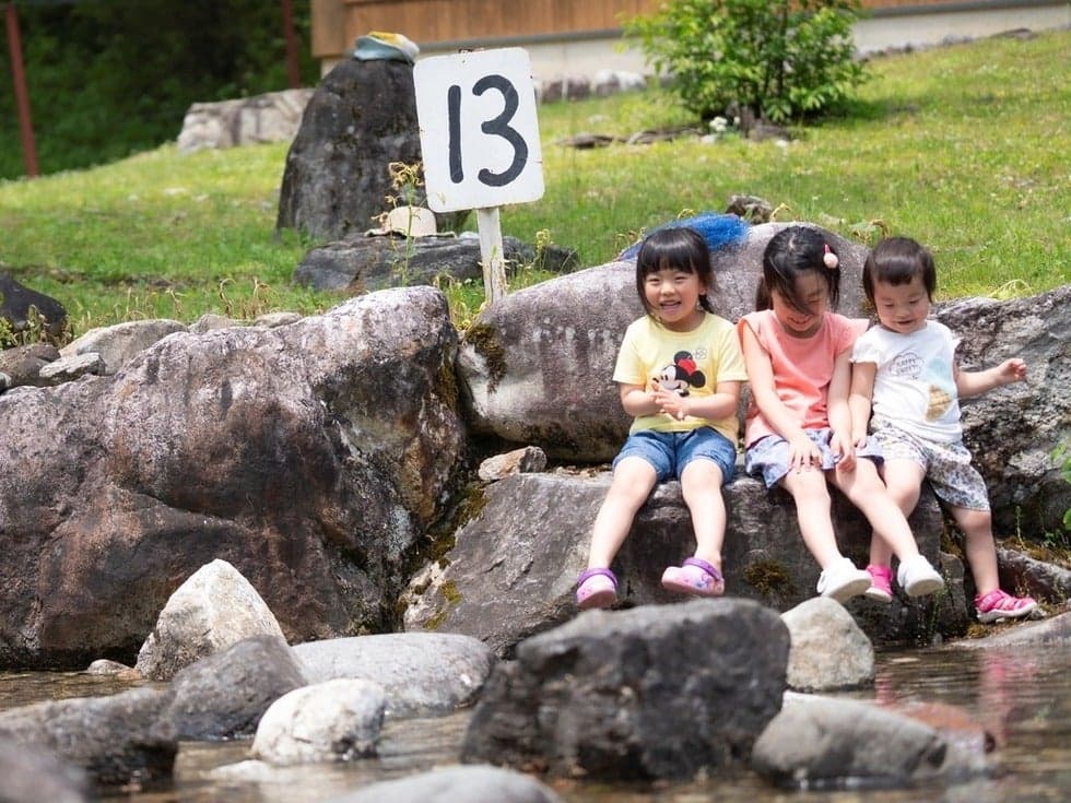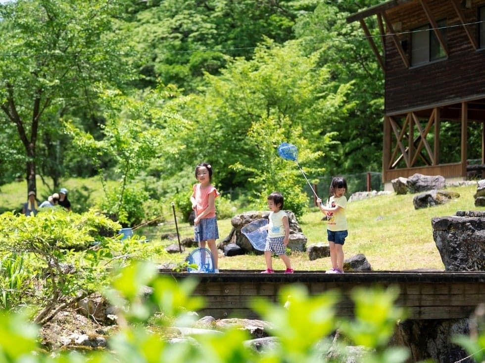 魚釣りや魚の手づかみなど安心して川遊びがができる人工河川「なかんじょ川」をはじめ、ログハウスのバンガローとオートキャンプ場を備えた自然公園で、地元の子どもたちにも大人気のレジャースポット。イワナ・ニジマスなどをワイルドに手づかみで捕ったり、釣り糸を垂らして釣ったりと、小さなお子さんからお年寄りまで、思い思いに川遊びを楽しむことができます。捕った魚をその場で炭火焼きにして頬張れば、心に残る夏の日の大切な思い出になるでしょう。もちろん、魚は持ち帰ることも可能です。ファミリーで、グループで、思う存分自然に親しみ遊びましょう!※事前の予約をお願いします。また、インターネットからのご予約をオススメします。
