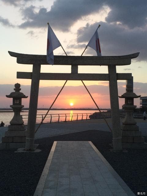 桑名神社と中臣神社の総称。寛文年間鋳造の青銅の大鳥居が残る。天下の奇祭“石取祭”で知られる。