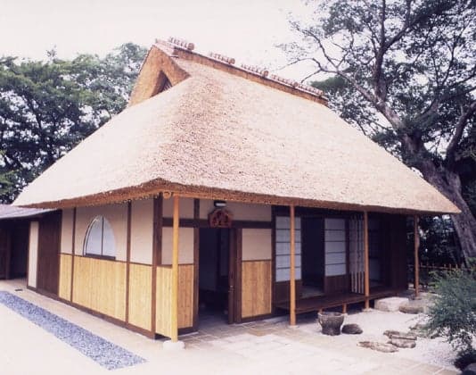 近代美術工芸科、藤井達吉ゆかりの草葺き入り母屋造りの民家を小原村(現豊田市)から移築し、ギャラリー兼休憩所として修復。