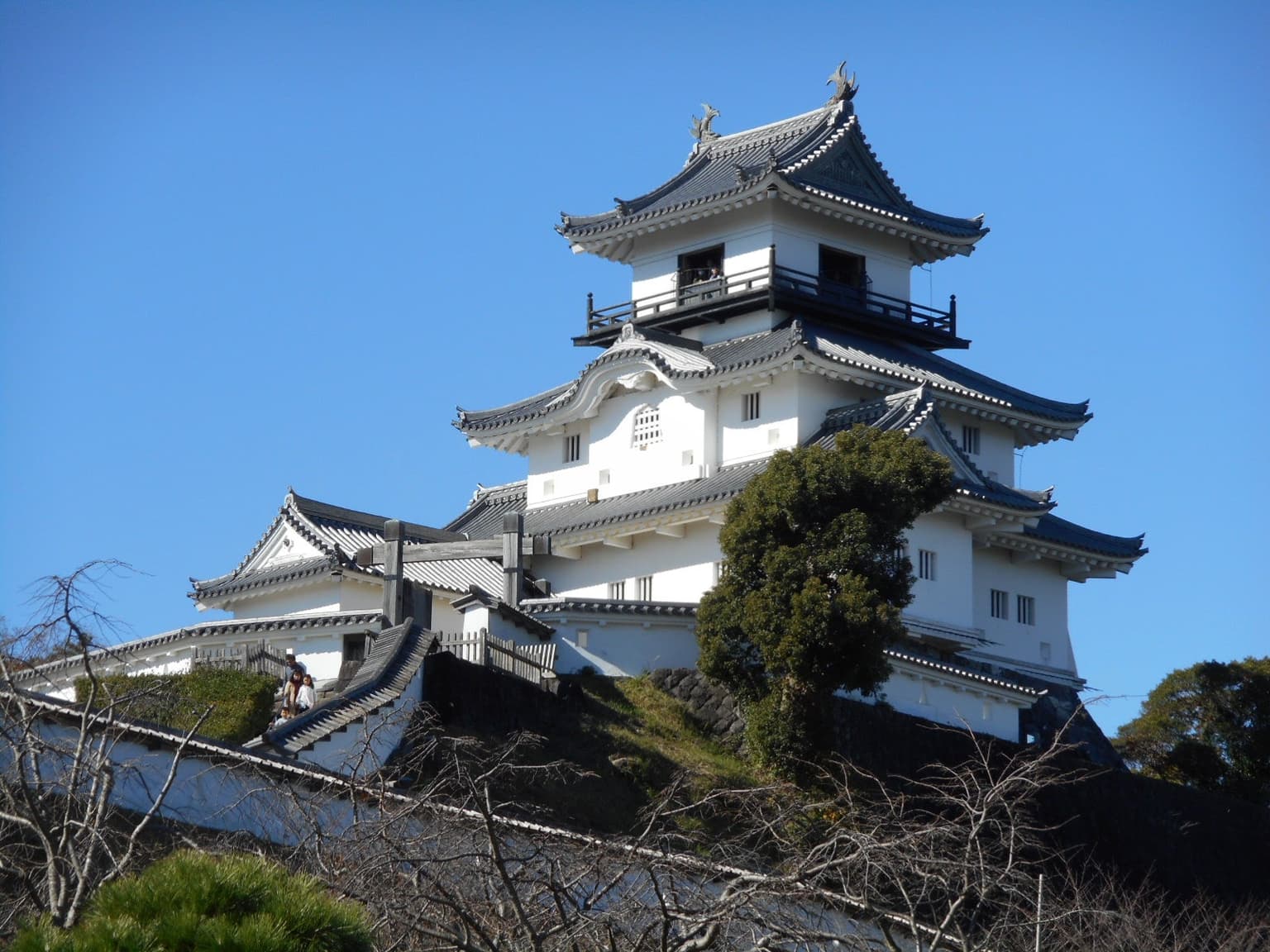 駿河守護今川氏の臣朝比奈泰熈が文明年間(1469?86)に創建したと伝わる。戦国時代には今川・武田・徳川による争奪戦が繰り広げられた。天正18年(1590)に豊臣秀吉麾下の山内一豊が入城し在城した10年間で天守閣の建立や城下の整備がなされ、東海の名城と称された。慶長5年(1600)関ヶ原の戦いの功績で一豊が土佐へ転封となると、その後城主はめまぐるしく交代するが、延享3年(1764)太田資俊が城主となり代々五万三千石を領して明治を迎えた。近年までは、城郭御殿(国重要文化財)と太鼓櫓を残すのみであったが、長年の市民の願いがかない、平成6年4月、日本初の本格木造によって美しく勇壮な姿が復元された。◎山内一豊(1546-1605)丹羽郡岩倉生れ。織田信安・信長、豊臣秀吉に仕えた。関ケ原の戦い後、徳川家康から土佐一国を与えられ、土佐藩の祖となる。「一豊の妻」の逸話は有名。