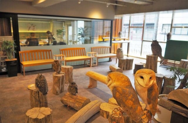 店内には22羽17種類のフクロウ達が皆様をお待ちしています。フクロウたちの森で、しあわせなひとときをあなたに!!お洒落でゆったりとした店内で、愛くるしく個性豊かなフクロウたちと触れ合って頂けます。フクロウたちに癒されながら、木をテーマにした空間でゆったりとした特別な時間をお過ごしください。