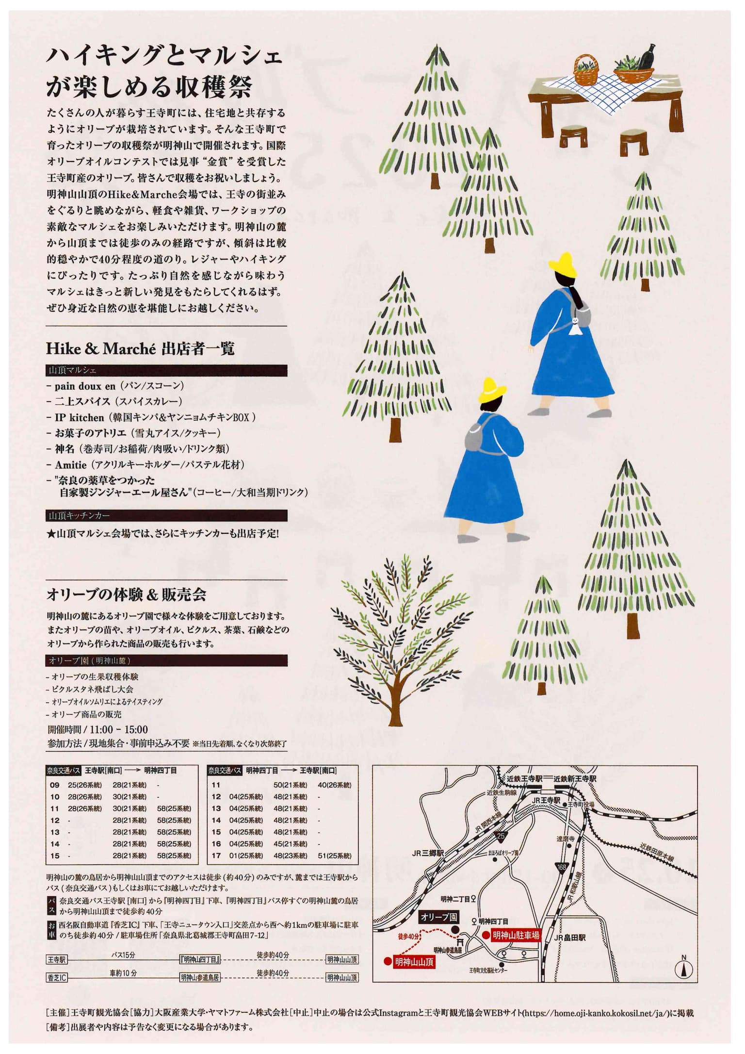 - ● Bus About 10 minutes from Oji Station South Exit bus stop to Myojin 4-chome bus stop, about 30 to 40 minutes walk to the summit on a paved gentle slope after passing through the Mei Kamiyama Torii. ● Car About 5 minutes from Kashiba IC to Mei Kamiyama parking lot, turn left at the Oji New Town Entrance intersection and use the Mei Kamiyama parking lot (free) (9:00-19:00)
