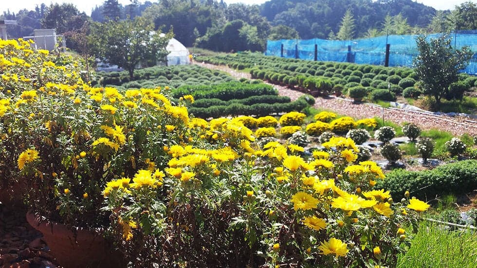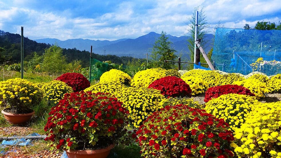 Chrysanthemum Garden in the Autumn Sky looking into the Alps