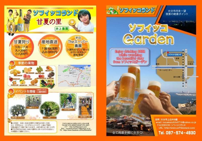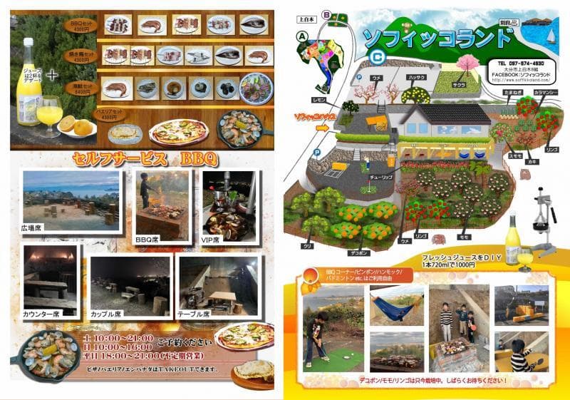 - [Sweet Summer Hunting] ・ Saturdays, Sundays, and holidays: From 10:00 to 16:00 (Information is from 10:00 to 12:00) (Admission fee: 300 yen for adults and 200 yen for children) You can sample one in the park, take-out sweet summer 100 yen per piece. ・ Weekdays (reservation only): 13:00~16:00 (No admission fee, paid only for the amount collected, 100 yen per sweet summer) [Sofikko Garden BBQ] Saturday: From 10:00 to 21:00 Sunday: From 10:00 to 16:00 Weekdays: From 18:00 to 21:00 (irregular business, reservation required) Pizza, paella and empanada can be TAKEOUT. (Reservation required)
