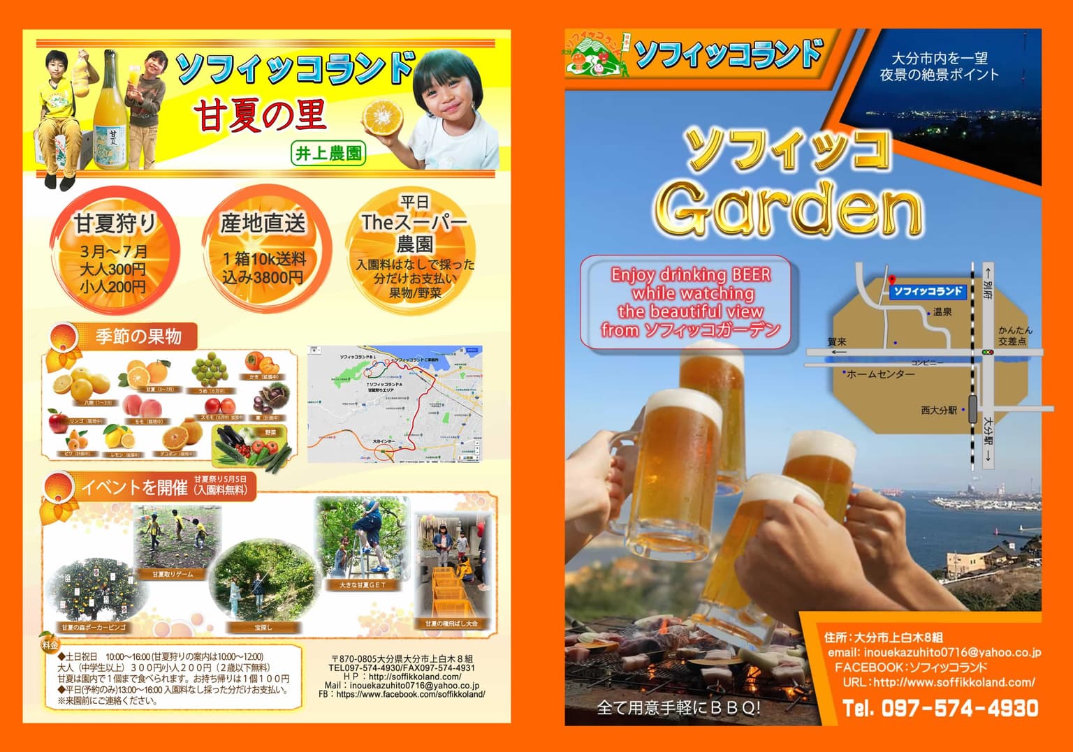 - [Sweet summer hunting] Saturdays, Sundays, and holidays: From 10:00 to 16:00 (Information is from 10:00 to 12:00) (Admission fee: 300 yen for adults / 200 yen for children) One sample is available in the park, take-out sweet summer 100 yen for weekdays (reservation only): From 13:00 to 16:00 (No admission fee, only paid for the amount collected, 100 yen per sweet summer) [Soficco Garden BBQ] Saturday: From 10:00 to 21:00 Sunday: From 10:00 to 16:00 Weekdays: From 18:00 to 21:00 (Irregular business, reservation required) Pizza, paella, and empanada can be taken out. (Reservation required)
