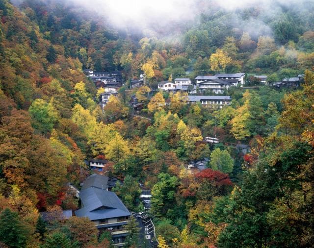 Autumn leaves at Shirahone Onsen