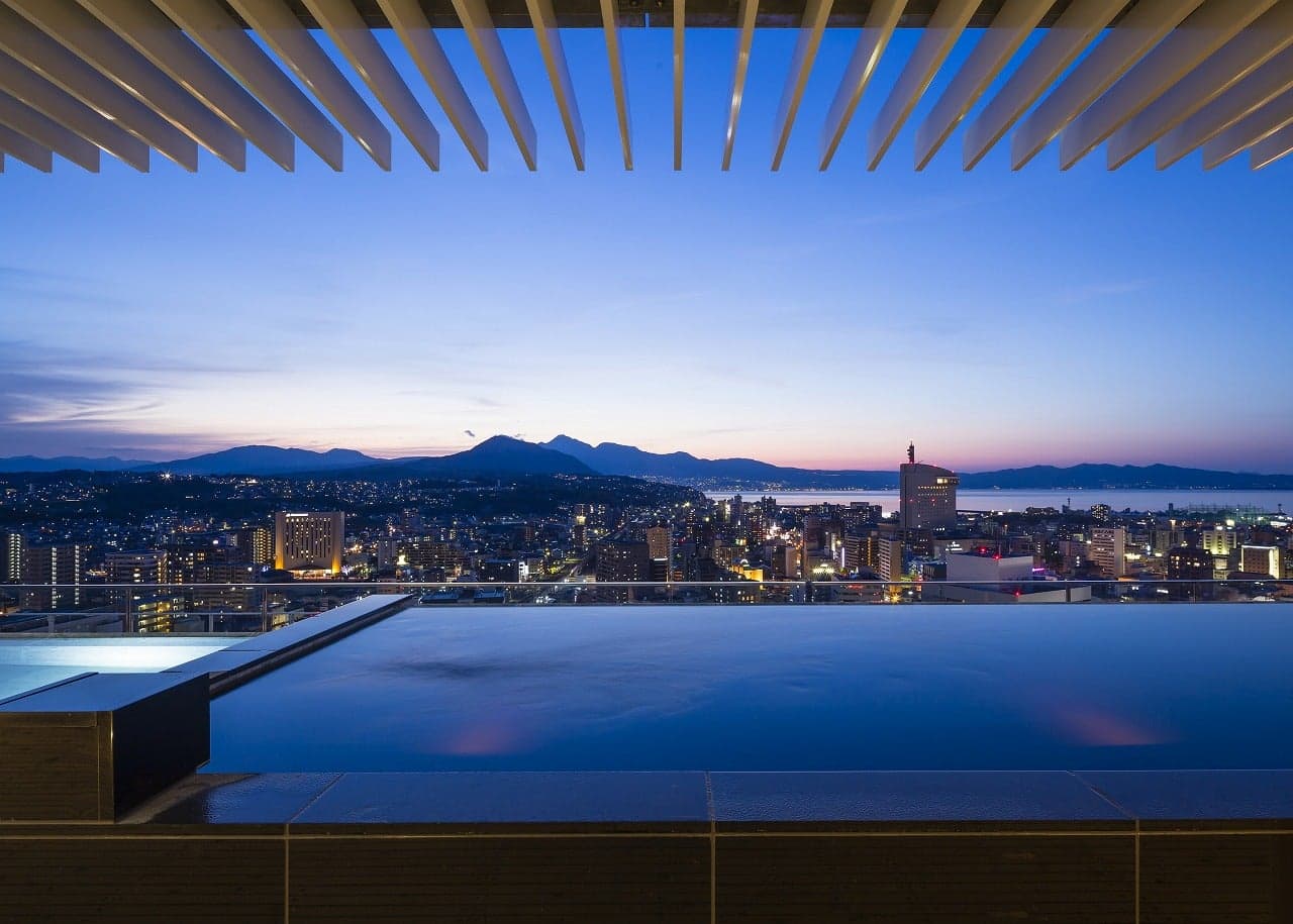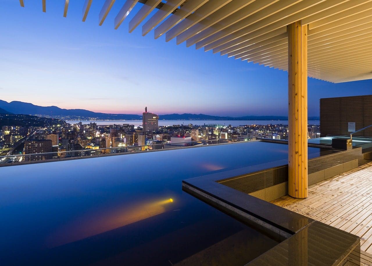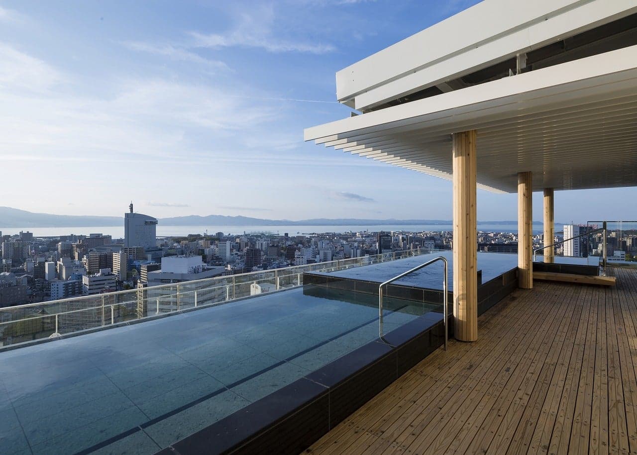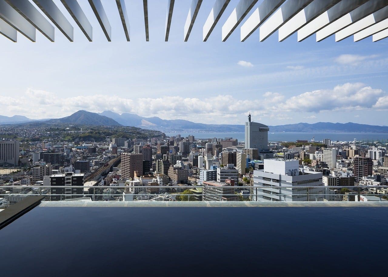 This hot spring is strategically located on the 19th-21st floor of "JR Oita City" that is connected with Oita Station. From the rooftop open-air bath located 80 meters above the ground, you can enjoy a vast panorama view of Oita's rich ocean and mountains.