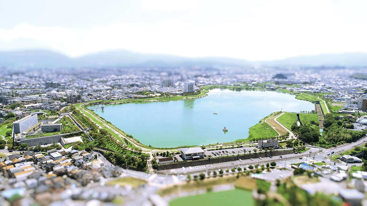 Sayama Pond has a long history. A survey conducted in conjunction with the Heisei renovation revealed that it was built around 616, approximately 1,400 years ago. In other words, this pond is an artificial pond built to secure water for agriculture. It has a perimeter of 3.4 km and an area of about 400,000 square meters. This pond has taken on its present form as a result of the human knowledge and ingenuity of each era.