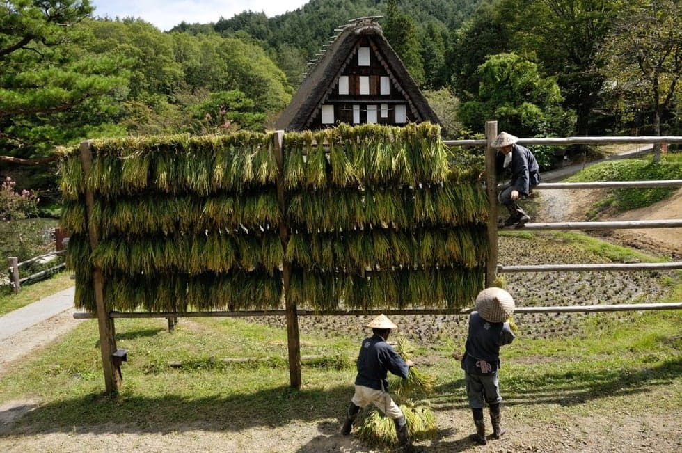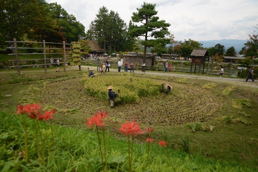 Rice harvesting at Hida no Sato Kurumada