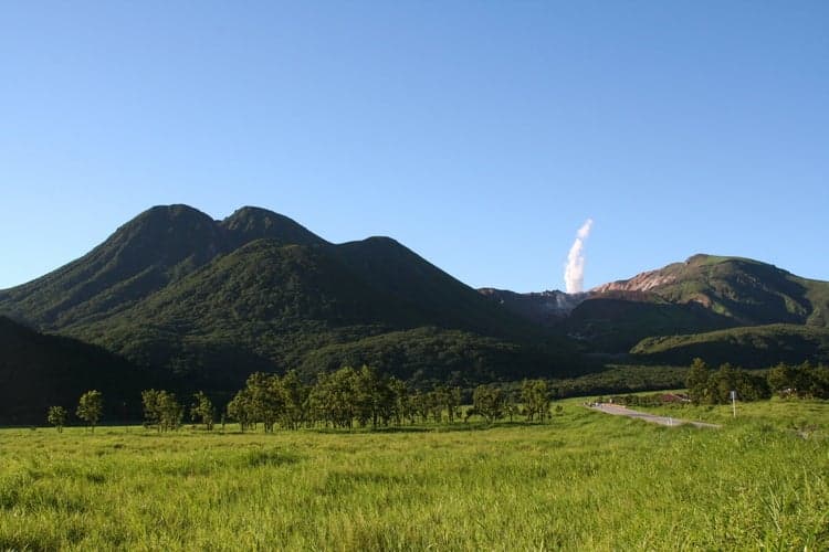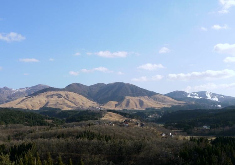 Idyllic scenery stretches throughout the gradual hills 800 to 1,200 meters above sea level here in Handa Plateau. Many iconic onsen hot springs are found near here: Kannojigoku Onsen, Ukenokuchi Onsen, Chojabaru Onsen, as well as many ryokan facilities and public communal hot springs. Rich in natural environment, the Plateau is also home to many cattle farms and ranches as well. Stunning colors and textures of abundant nature can be captured here all throughout the year - including deep green from spring to summer, golden color of Japanese pampas grass in fall, and sparkling white glares of snow in winter.
