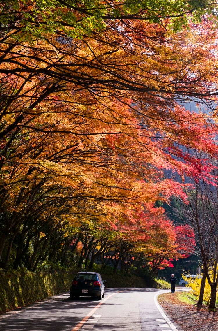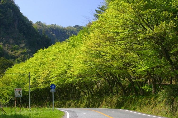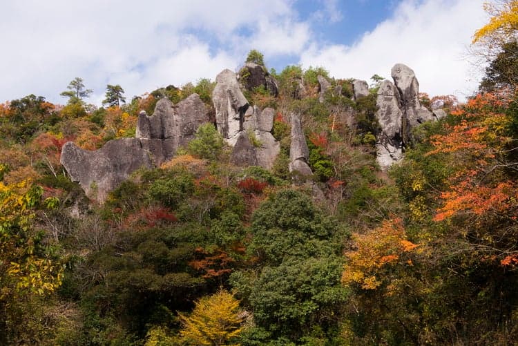 Shinyabakei is a valley region along the Yamautsuri River off of the Yamakuni River. It is home to scenic spot Hitomehakkei, known for the view of unique rock formations and peaks. The area offers nothing but a colorful display of scenery all throughout four seasons: greenery in spring through summer and foliage in autumn. Shinyabakei draws a high number of visitors especially during fall.