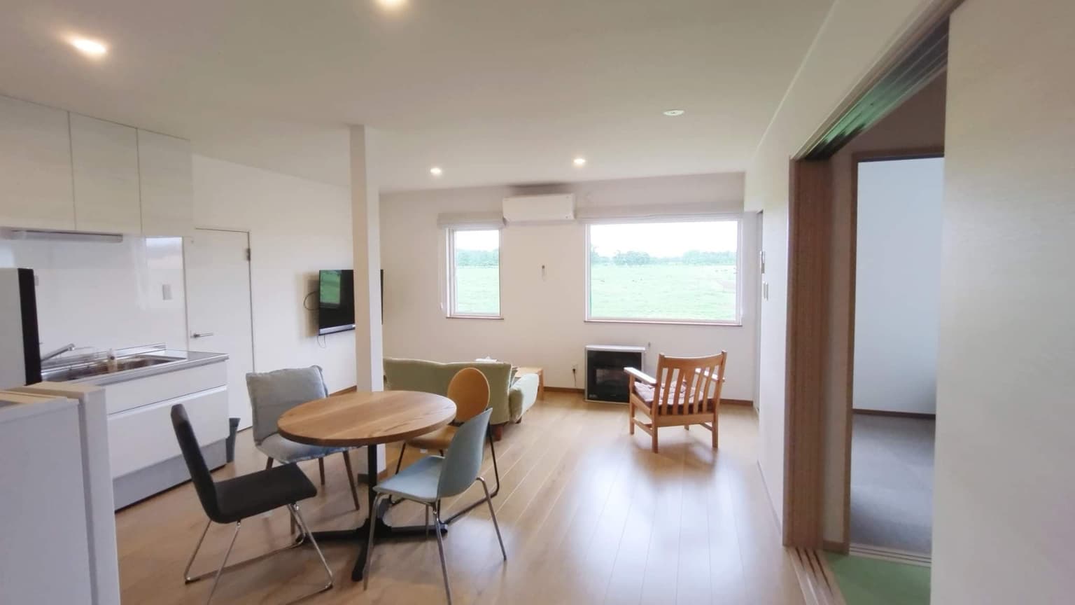 The house is equipped with a kitchen, toilet, bathroom, and drum-type washing machine, and long-term stays are also possible.