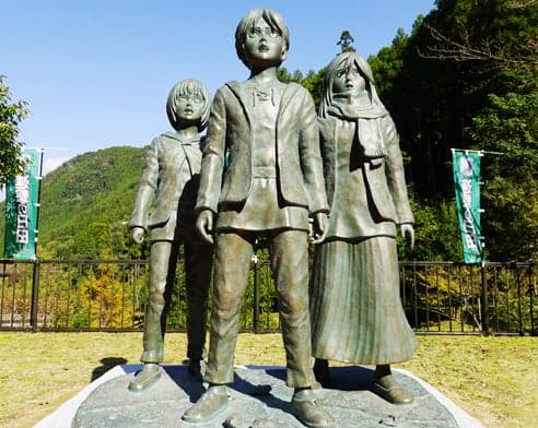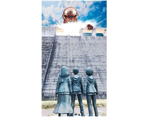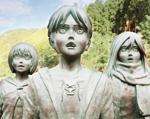 Oyama Dam Downstream Square "Bronze Statue of Attack on Titan Ellen Mikasa and Armin"