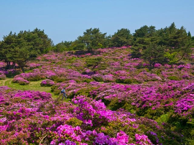 Being that it is a tableland, Mt. Hane is one of the rarest in the country. It is also a great hiking/trekking destination, taking only about 2 hrs. to the top from various points at the foot of the mountain. Flowers of rhododendron kiusianum beautifully come into full bloom between May and June on a 4-hectare/10-acre property here, visually entertaining the visitors to this region.