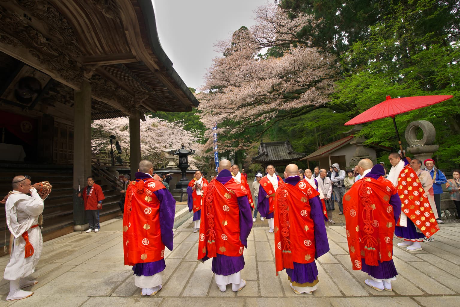 While feeling the coming of spring, he entrusts his wishes at Hashikura-ji Temple. A special time to prepare your mind at a sacred place related to Kobo Daishi.