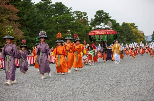 - Departure from Kyoto Imperial Palace at 12:00 → Karasuma Oike 12:50 → Heian-jingu Shrine: 14:30 Held every year on October 22 / In case of rain, postponed to October 23 the following day