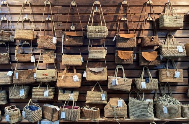 国の伝統的工芸品の「奥会津編み組細工」を取り扱う。ヤマブドウヅルやヒロロという草で編んだバッグやマタタビのざるなど。