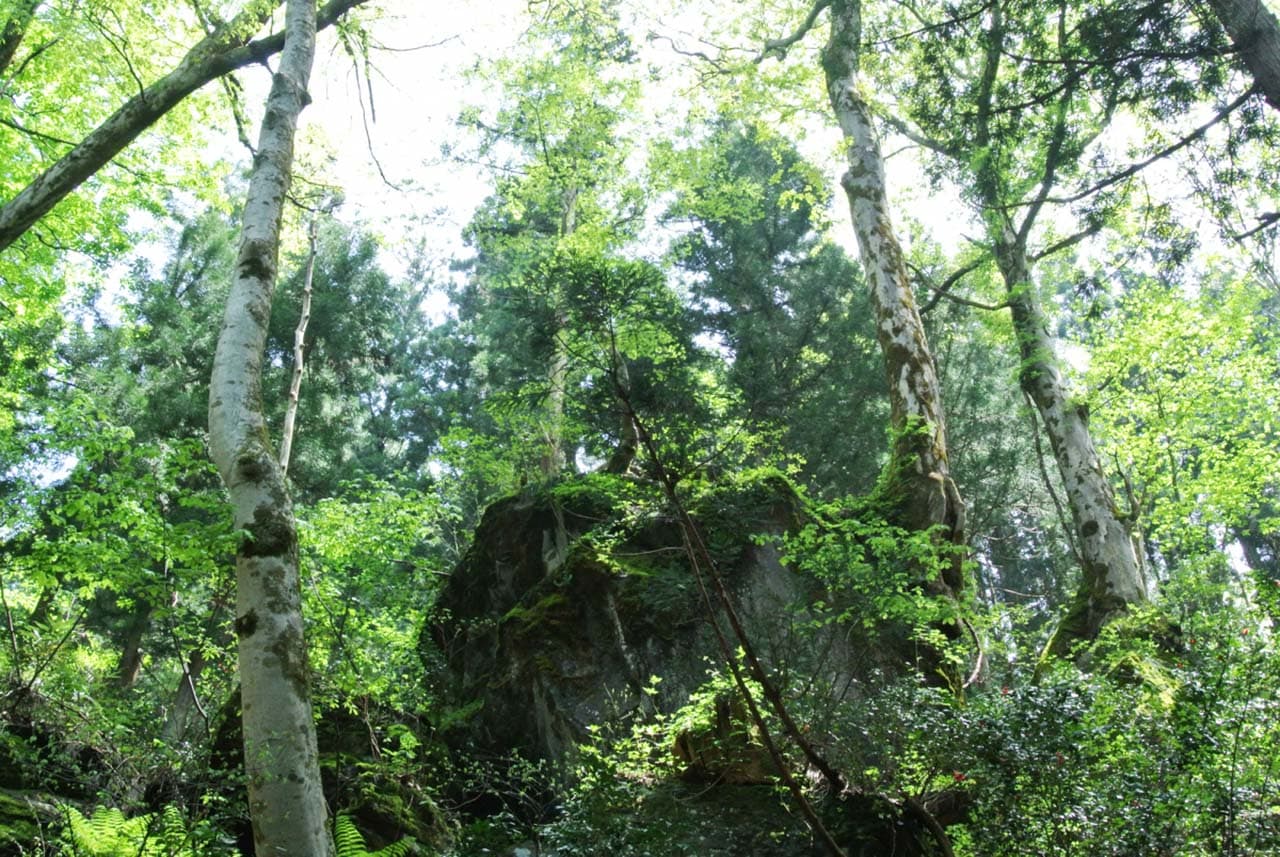 A historic temple at the entrance of Akiyamago, an unexplored area where an anecdotes about healing of eye diseases remain