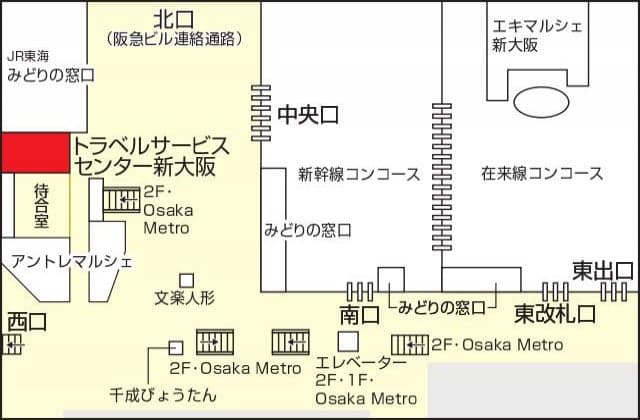 - 〒532-0011 5-16-1, Nishinakajima, Yodogawa-ku, Osaka-shi, Osaka 3F Concourse Travel Service Center Shin-Osaka, JR Shin-Osaka Station