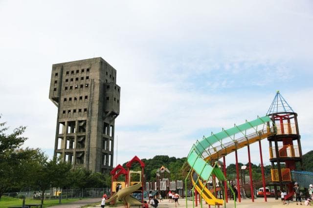 Halal Information - General welfare facilities, grounds, multipurpose open space, friendship park, former Shimen Mining Works pit tower (important cultural property of country)