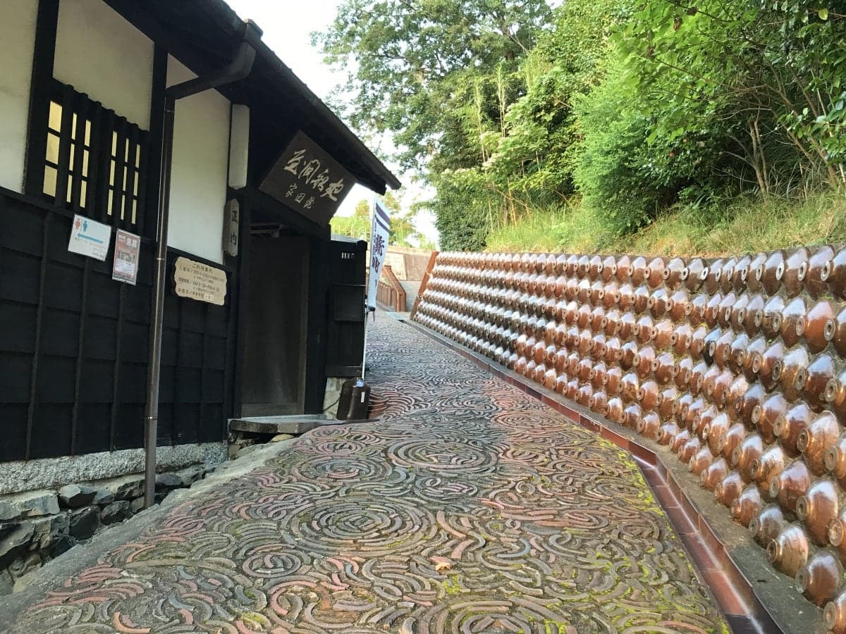 また、土管を焼いた時に使った焼き台「ケサワ」を地面に埋め込み、坂道の壁には陶製の焼酎瓶が一面に敷き詰められており、暮らしの中に息づく常滑焼の風景を楽しめる。