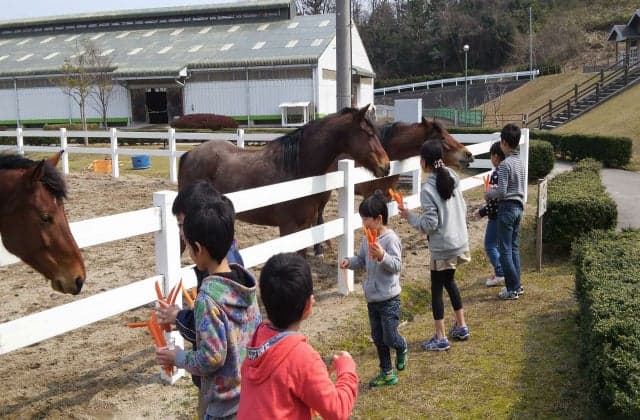 It is a horse riding facility where you can interact with horses while watching the mountains of the Chugoku Mountains.