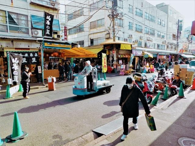 - 5 minutes walk from Tsukiji Station Tsukiji Station A 5-minute walk from Tsukiji Market Station on the Tokyo Metro Hibiya Line Toei Oedo Line