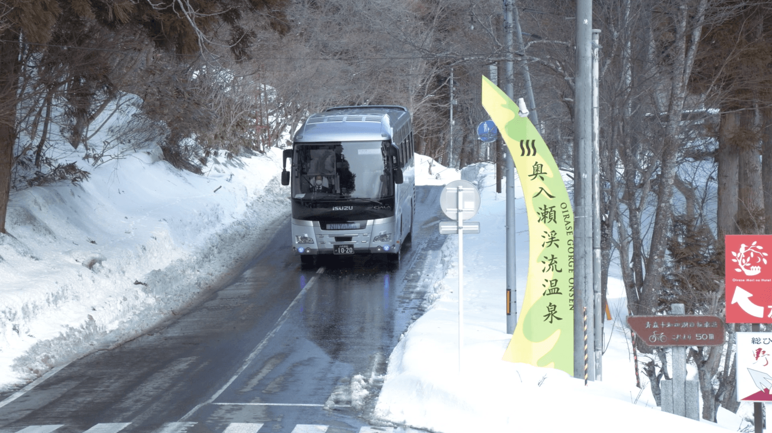 A limited-time bus that is convenient for winter sightseeing, connecting the city area of Towada from Yakiyama to Lake Towada shore resting house.