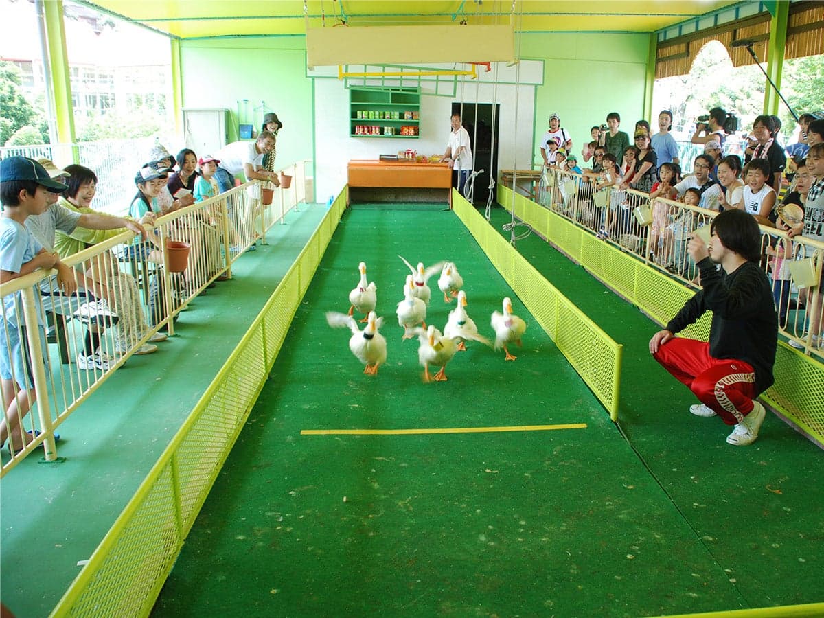 Rakutenchi features a petting zoo full of small animals and comfortable rides suited for everyone from young children to senior citizens. Rakutenchi's iconic attraction duck race is very popular as well. The 160 meter-long Rainbow Suspension Bridge on site commands a stunning view of Beppu Bay. The park premises offers a variety of beautiful scenery throughout all four seasons, but this destination is perhaps best known for its display of cherry blossoms in the spring. Rakutenchi also has one of the country's steepest cable car services, operating at 30 degrees. The ride departs from the main gate of the premises.