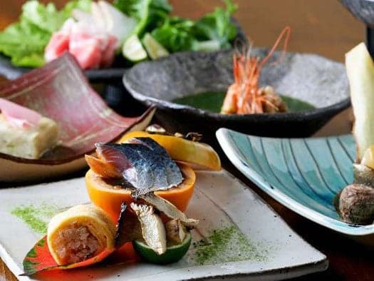 Natural hot springs and creative Japanese food inn