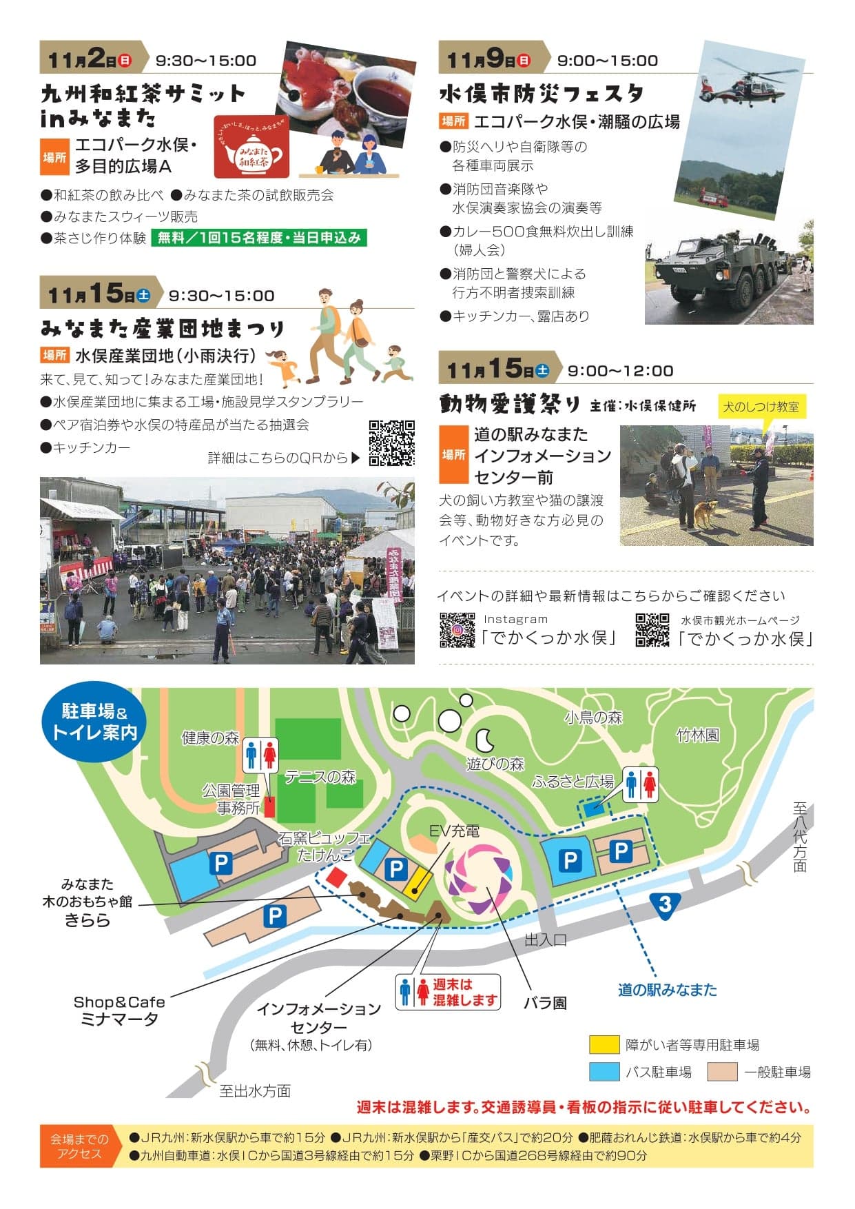 - Approx. 15 minutes from Minamata IC on the Minamikyushu Nishimawari Expressway Approx. 15 minutes by car from Shin-Minamata Station on the JR Kyushu Shinkansen Approx. 5 minutes by car from Minamata Station on the Hisatsu Orange Railway