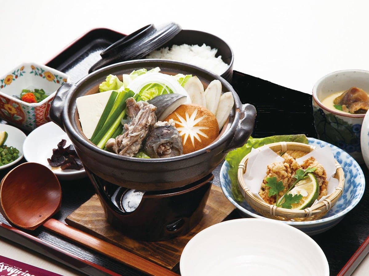 Asagirino Sho located in Ajimu, a village perfect for a family vacation, features a restaurant and a kiosk. The on-site eatery offers a wide variety of menu items including softshell turtle cuisine, Western dishes, ramen noodles, and more. The shop features products such as Ajimu-produced wine, shochu, snacks, and pickled vegetables. The neighboring facility, Ajimu Winery Budoushu Kobou, offers free wine samples as well.