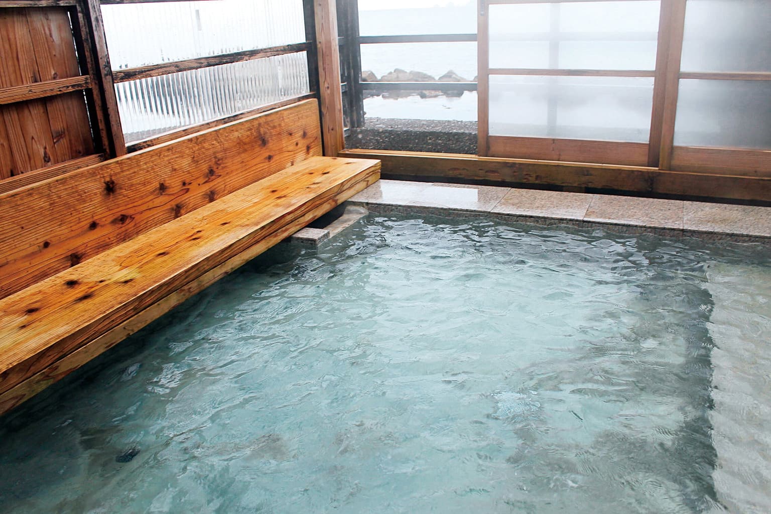 Shio-yu uses sea water unique to a seaside town. The sea water is pumped from the sea and heated.