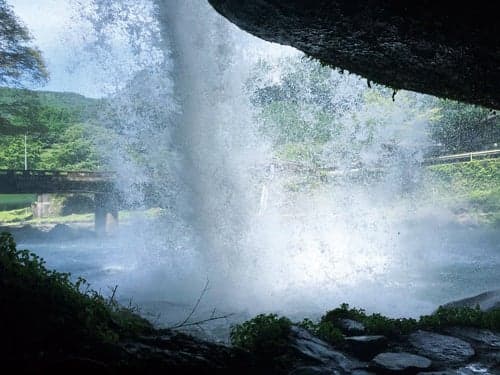 Situated right on the border of Amagase Town in Hita City and Kusu Town, double-drop Jion Falls measures 30 meters total: 20 meters for upper section, 10 meters for lower section. Nicknamed "Urami no Taki" hails from the fact that you can walk to the back of the Falls. It gets a beautiful lightup at night. Legend has it that circling the Falls clockwise brings fortune and, also, that there is a giant snake living in or around the premises.