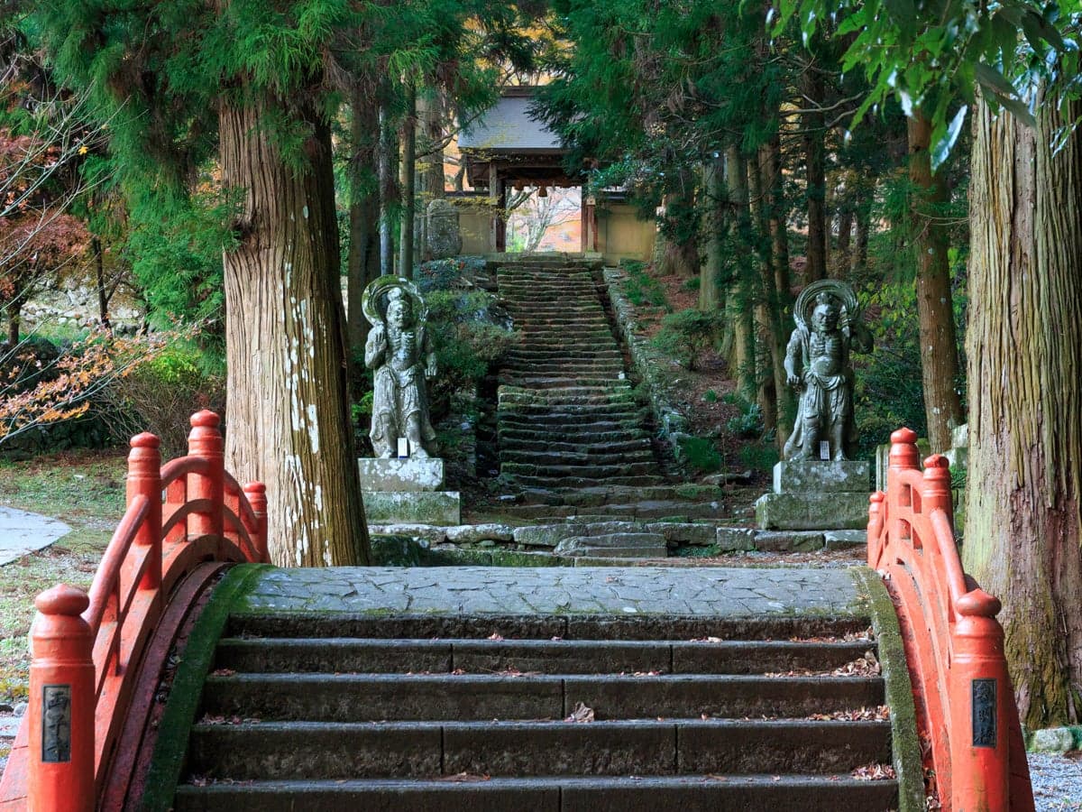 Built in 718 A.D. by Ninmon, Futago-ji Temple is situated in the central Kunisaki Peninsula. Two Nio Guardian figures consecrated at the main temple gate are the largest in all of Kunisaki and are said to be the most iconic, staple fixtures of this peninsula region. Vast in number of colors and leaves, the autumn foliage spreading across the entire premises, along with the rich greenery in spring, makes this one of the top scenic spots in all of Oita. As of late, the temple location has been drawing a lot more younger visitors for its mystic and spiritual notion and influence.