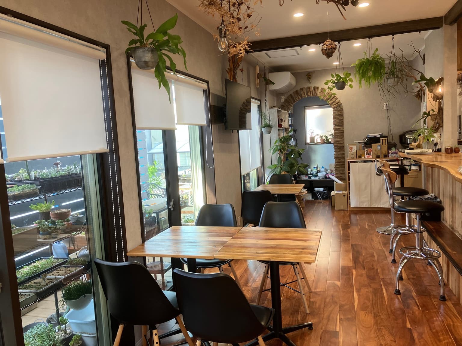 A small cafe where conversations spread naturally. It is full of succulent plants from the entrance to the store.
