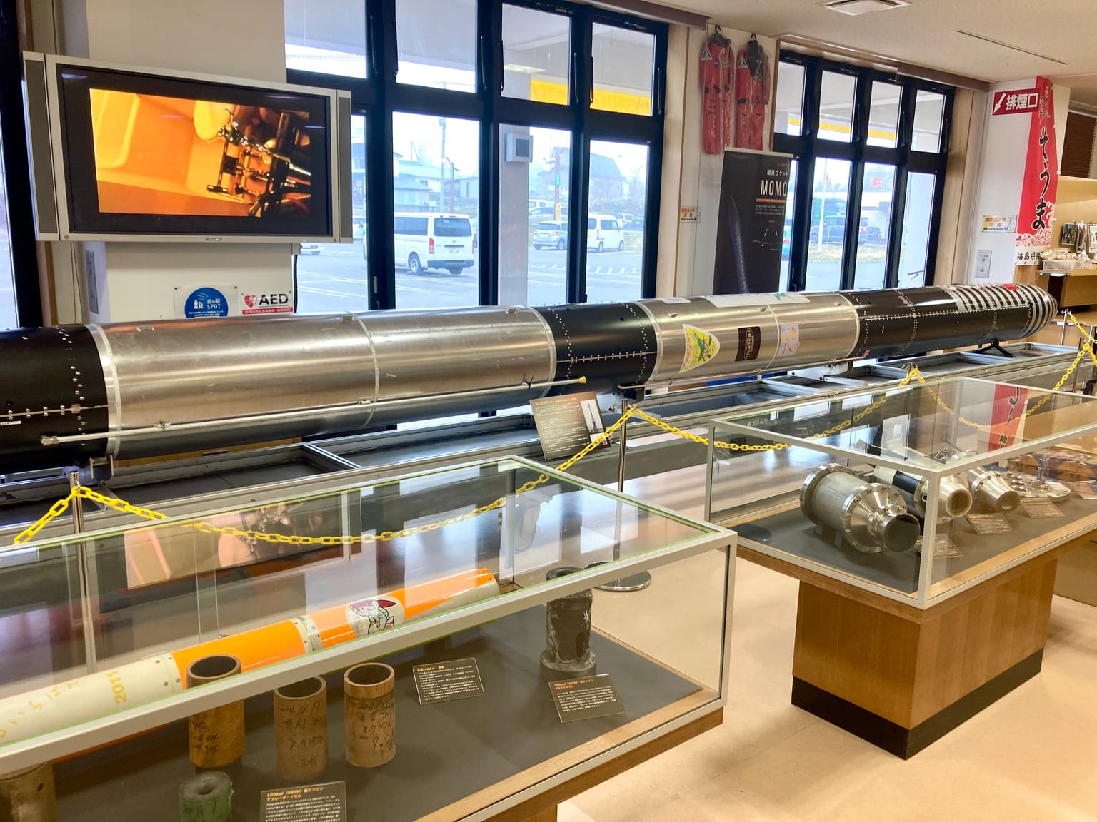 There is a space-related goods corner as "the town of space" Taiki, as well as an exhibition by Interstellar Technologies, a company that develops rockets in the town.