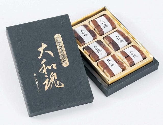 大和蔵酒造の大吟醸酒を練りこんだホワイトチョコの生チョコ。冷凍して食べるても美味しい。