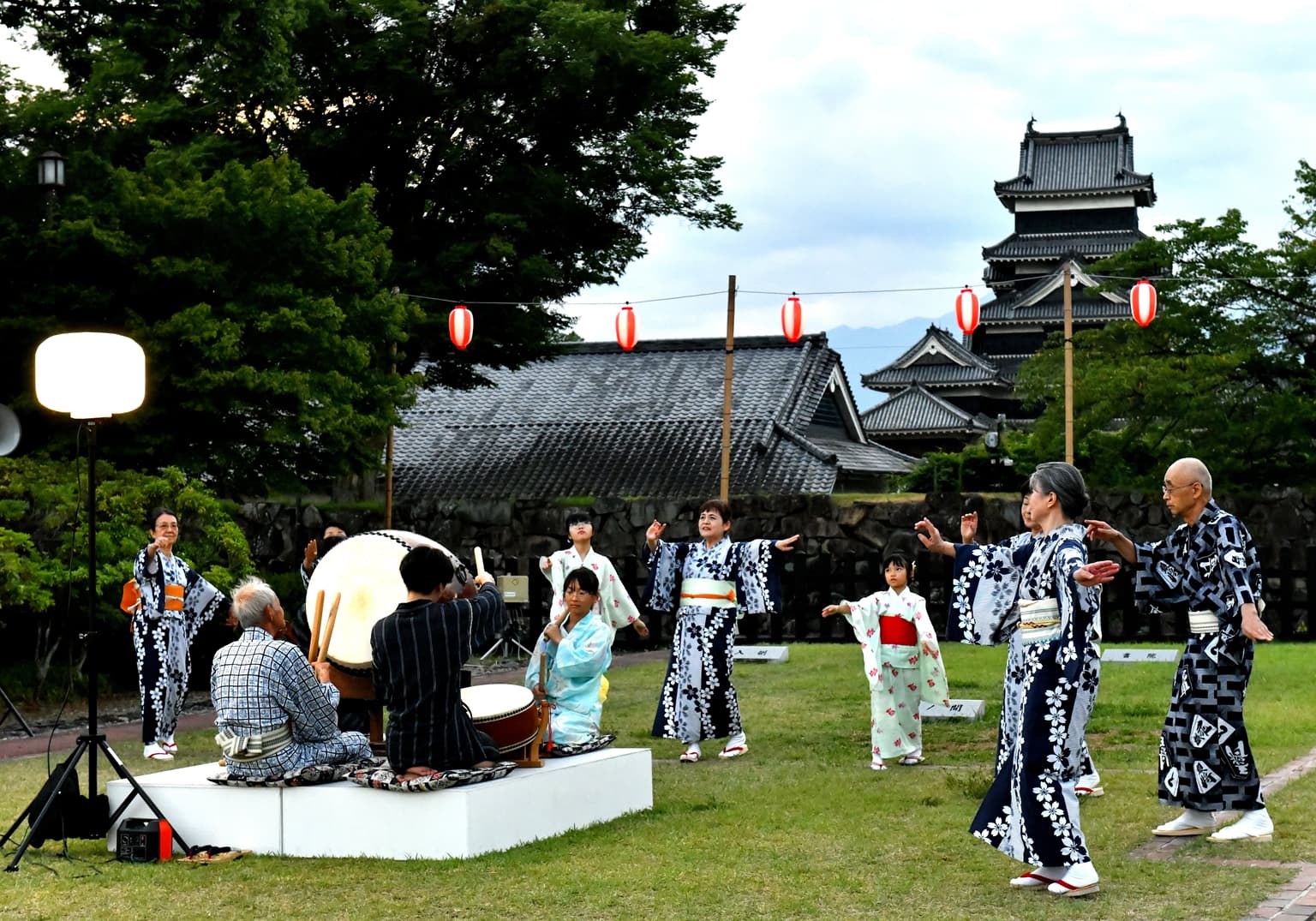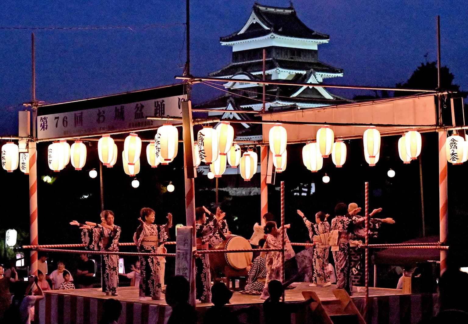 - [Summer Open Time Extension] From 8:00 to 18:00 (last entry is 17:30) ※ Normally, from 8:30 to 17:00 (last entry is 16:30) ◎ Held on the same day 【Free admission to Wafuku visitors】 Visitors in kimono are free of charge for admission to the National Treasure Matsumoto-jo Castle and the former Kaichi School building. ◎ Three days during the period [Ojo Bon Odori] On the back of Matsumoto-jo Castle, we dance folk dances such as "Matsumoto Ondo" and "Asama-bushi" for three consecutive nights