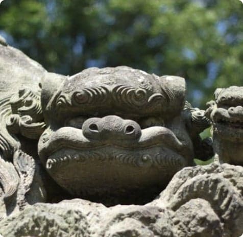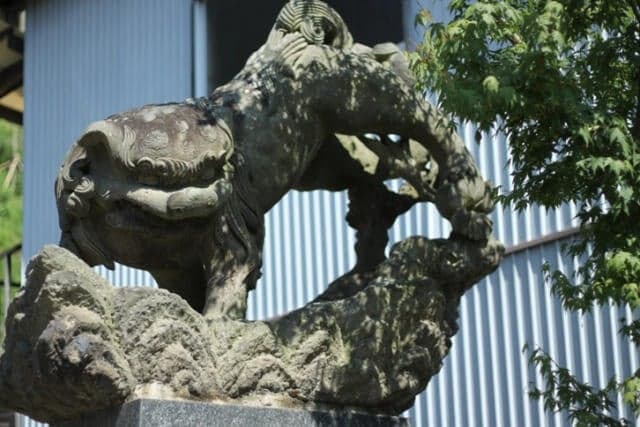 - Prefectural Designated Important Cultural Property Copper Waniguchi Municipal Designated Important tangible folk cultural property Komainu (stone sculpture) date: Showa period