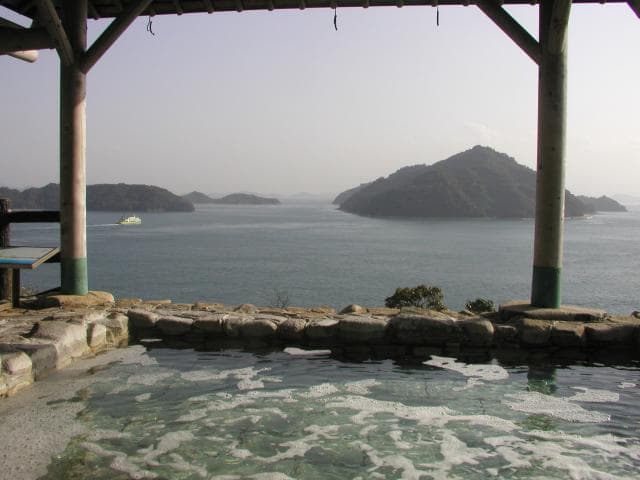 - 90 minutes by Hiroshima car Get off at Sanyo Expressway Kawachi IC and go to Takehara direction 25 minutes by Takehara Port ship Tarumizu or Shirouzu Port 15 minutes