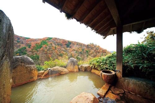 This place is located in Kyusuikei and is crowded with tourists during the autumn leave season. Not only staying guests, but day-trip guest are also welcome to use this natural hot spring facility. Both its outdoor bath and chartered baths can give you a wonderful view of the surroundings.
