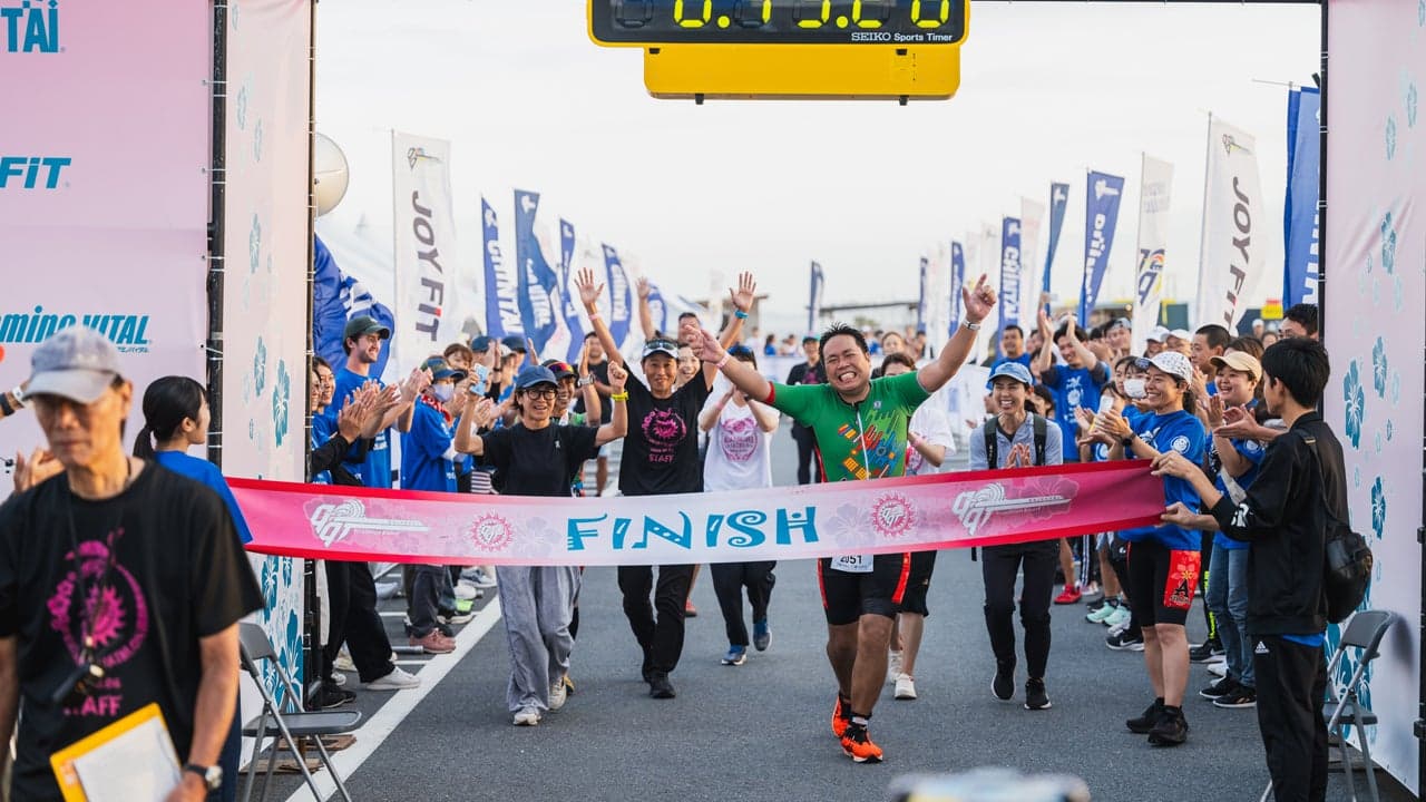 フィニッシュ会場ではイべント、ハマグリの網焼きや地元の特産物を楽しめます。