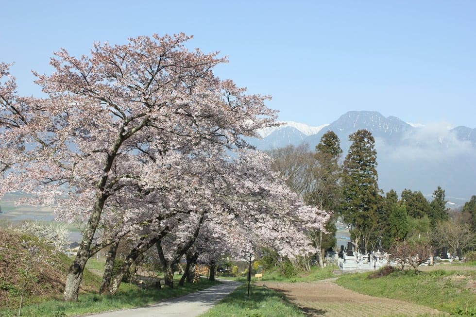 A row of cherry blossom trees in Uyama